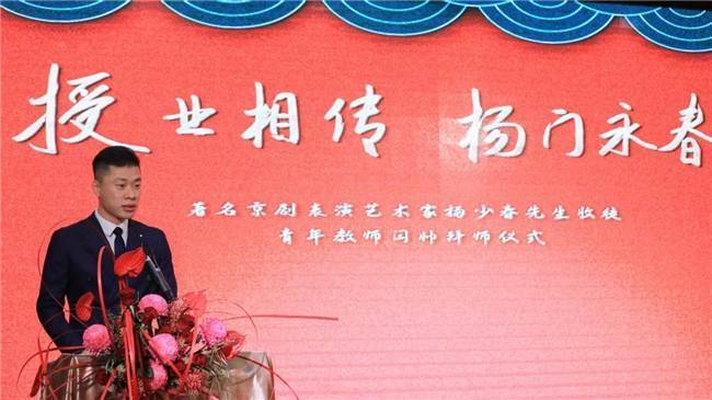 最后,杨少春先生登台致辞,对各位来宾的莅临表示诚挚感谢。他回忆了与闫帅相处过程中,其朴实正直的人品、刻苦虚心的治学态度与对艺术的敬畏之心,直言“收徒先看德,闫帅的品格与追求,让我愿意倾囊相授”。杨先生表示,传承京剧武生艺术是自己毕生的责任与追求,此次收徒既是对恩师教诲的回报,更是对艺术未来的期许,希望闫帅能不忘初心、感恩奋进,将金派武生艺术与戏曲教育事业推向新高度。