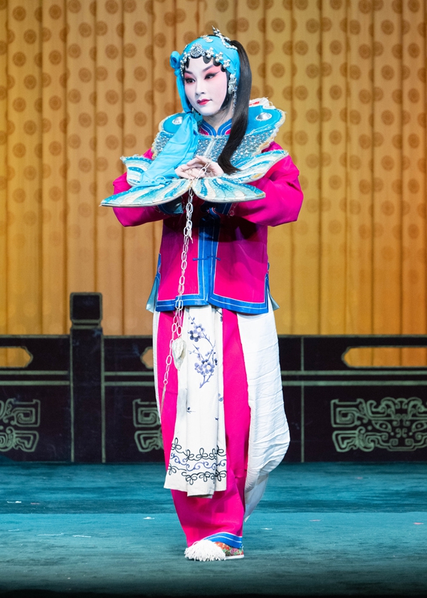 2025年10月27日,在北京安徽会馆的舞台上,北京戏曲艺术职业学院的张梦瑶来了一个“一赶三”的演出,前饰《坐宫》中的铁镜公主,中饰《扈家庄》中的扈三娘,后为票友演出的《锁麟囊》中“三让椅”一折配演赵守贞。