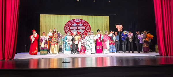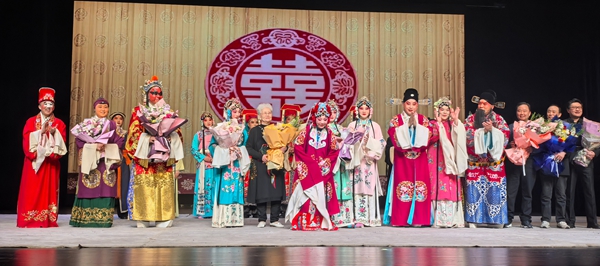 演出结束谢幕时,观众们涌向台口,鲜花如潮,大家近距离抢镜头,这样的场景胜过专业剧团的演出,真是太动人了。