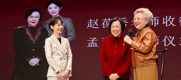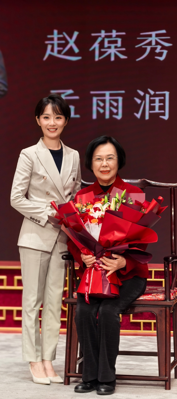 仪式由赵葆秀先生弟子、北京电视台资深主持人、首任梅兰芳大剧院总经理,余声倾情主持。现场还特别邀请到京剧老旦大家李金泉先生后人李思光、李思增先生;孟雨润一家三代深耕京剧老旦艺术,姥姥是安徽省著名老旦名家、原淮南市政协委员常婉梅,今年95岁高龄,也远道而来亲临现场,全家投身戏曲事业,用坚守与热爱诠释着京剧艺术的代代传承,成为现场一段动人的梨园美谈。