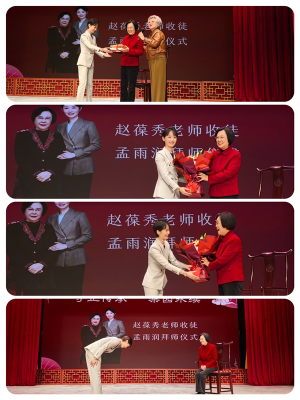 此次拜师仪式,既是京剧老旦艺术传承的重要时刻,更是中华优秀传统文化守正创新、薪火相传的生动实践。赵葆秀先生深耕京剧舞台数十载,技艺精湛、德艺双馨,是京剧老旦艺术的代表性传承人;孟雨润作为青年戏曲教育工作者,多年来潜心教学、执着追梦,此次拜入名师门下,将进一步精进艺术造诣、提升教学水平。未来,师徒二人将携手坚守戏曲初心,以师带徒、口传心授,让京剧老旦艺术代代相传、生生不息,为国粹京剧的传承与发展注入源源不断的青春力量,助力中华优秀传统文化绽放更加璀璨的时代光彩。