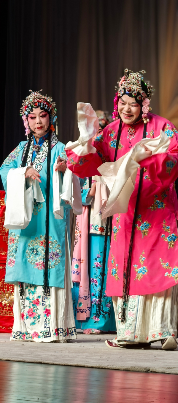 《凤还巢》是梅派的经典名剧,讲述了程家二女雪娥与雪雁的婚姻故事。蒋会长告诉记者,自2022年她接任会长以来,已相继在全国举办了6场“纪梅”活动的循环演出,尤其是马年初六下午在开明大戏院举行的“芳华迎春2026全国京剧票友新春演唱会”的一场演出(我也去观看的),得到了前辈艺术家和戏迷朋友的高度赞誉,为今天的全本戏公演奠定了基础。傍晚化妆时,蒋会长告诉记者,今天剧院楼上楼下全满,许多票友一大早就送来了祝贺花蓝,开演前半小时,戏迷们成群结伴来到开明大戏院,对今晚的演出提前进行热场,苏州的戏迷真的很执着。