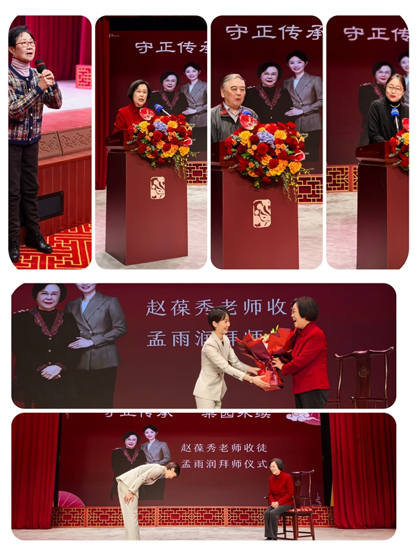 此次拜师仪式,既是京剧老旦艺术传承的重要时刻,更是中华优秀传统文化守正创新、薪火相传的生动实践。赵葆秀先生深耕京剧舞台数十载,技艺精湛、德艺双馨,是京剧老旦艺术的代表性传承人;孟雨润作为青年戏曲教育工作者,多年来潜心教学、执着追梦,此次拜入名师门下,将进一步精进艺术造诣、提升教学水平。未来,师徒二人将携手坚守戏曲初心,以师带徒、口传心授,让京剧老旦艺术代代相传、生生不息,为国粹京剧的传承与发展注入源源不断的青春力量,助力中华优秀传统文化绽放更加璀璨的时代光彩。